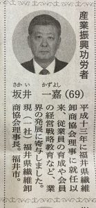 令和4年度 福井県 産業振興功労賞を弊社 坂井 一嘉(会長)が受賞しました。