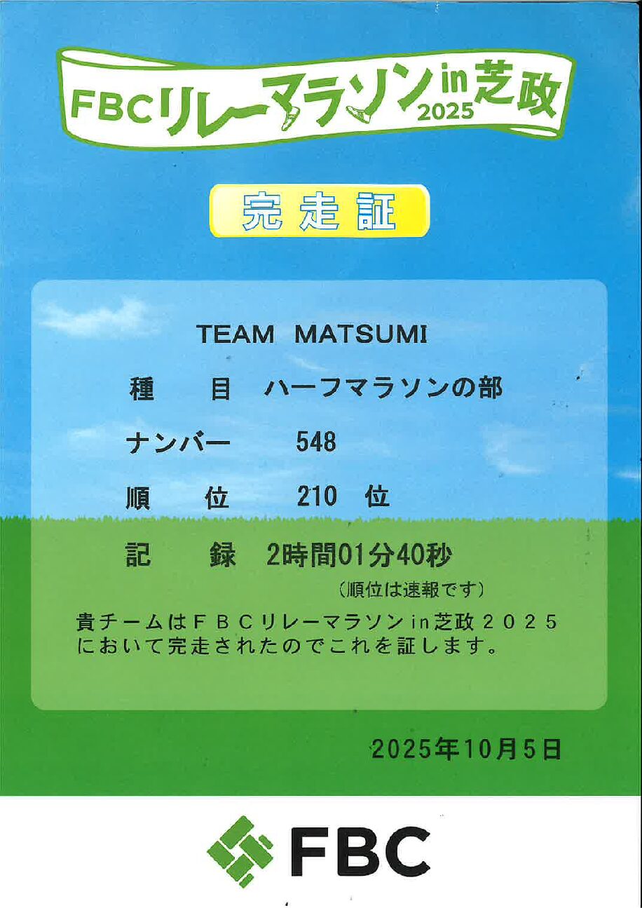 社員有志にて、芝政にてFBCリレーマラソンに初参加。