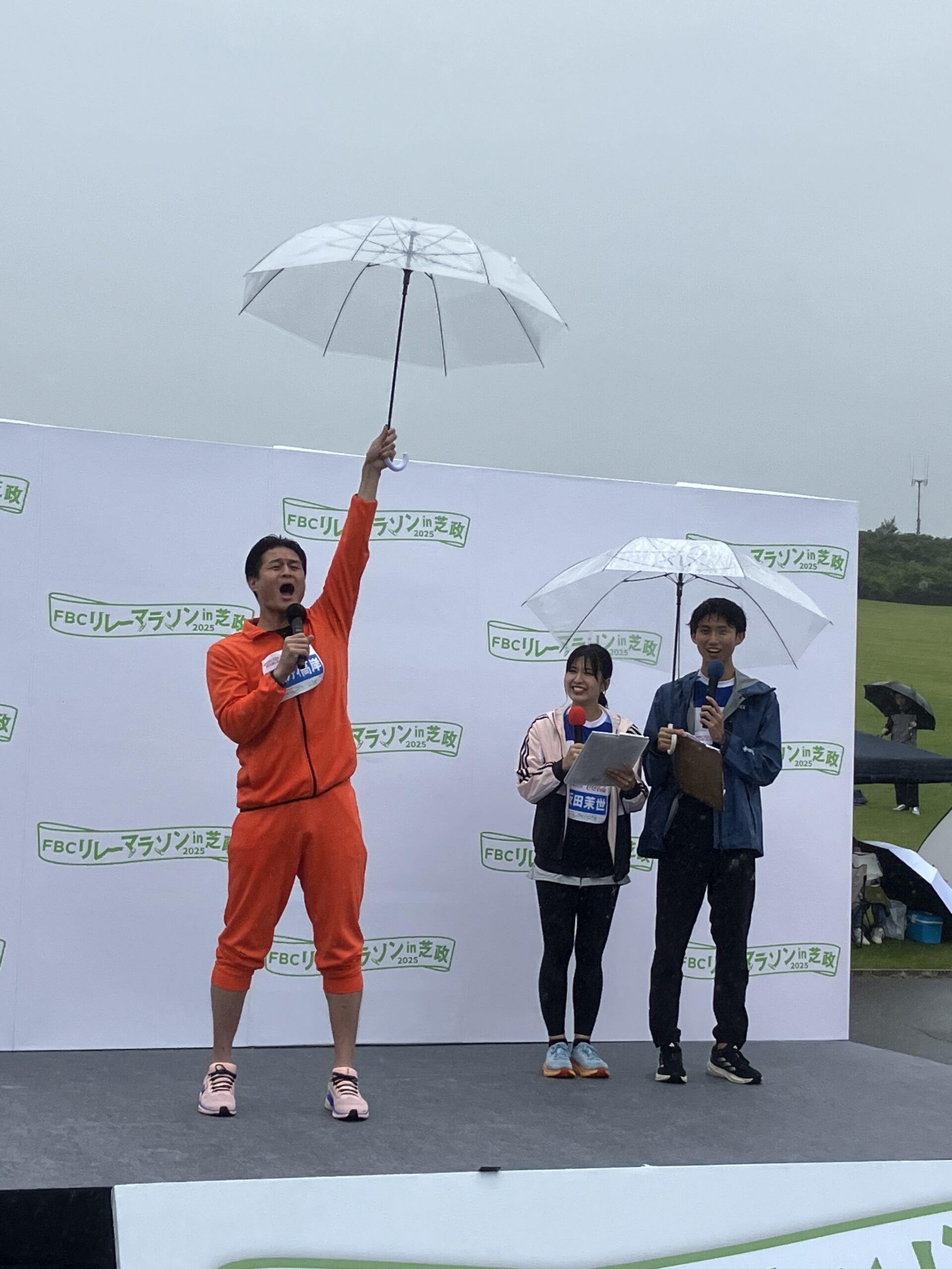 あいにくの雨でしたが、普段の運動不足解消に、熱いたすきをつなぎ、みんな頑張って完走!!